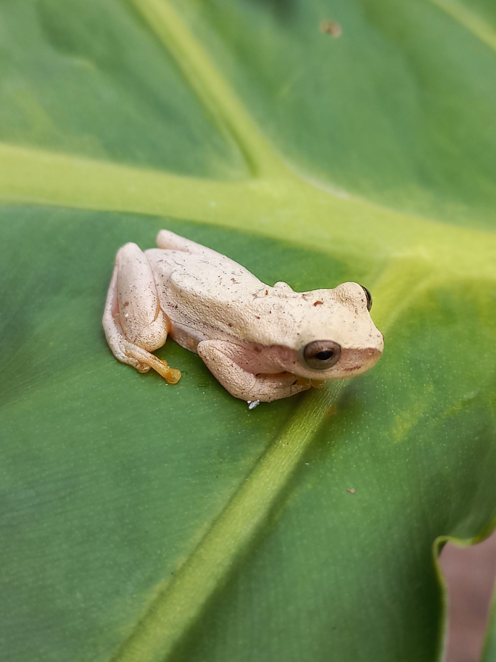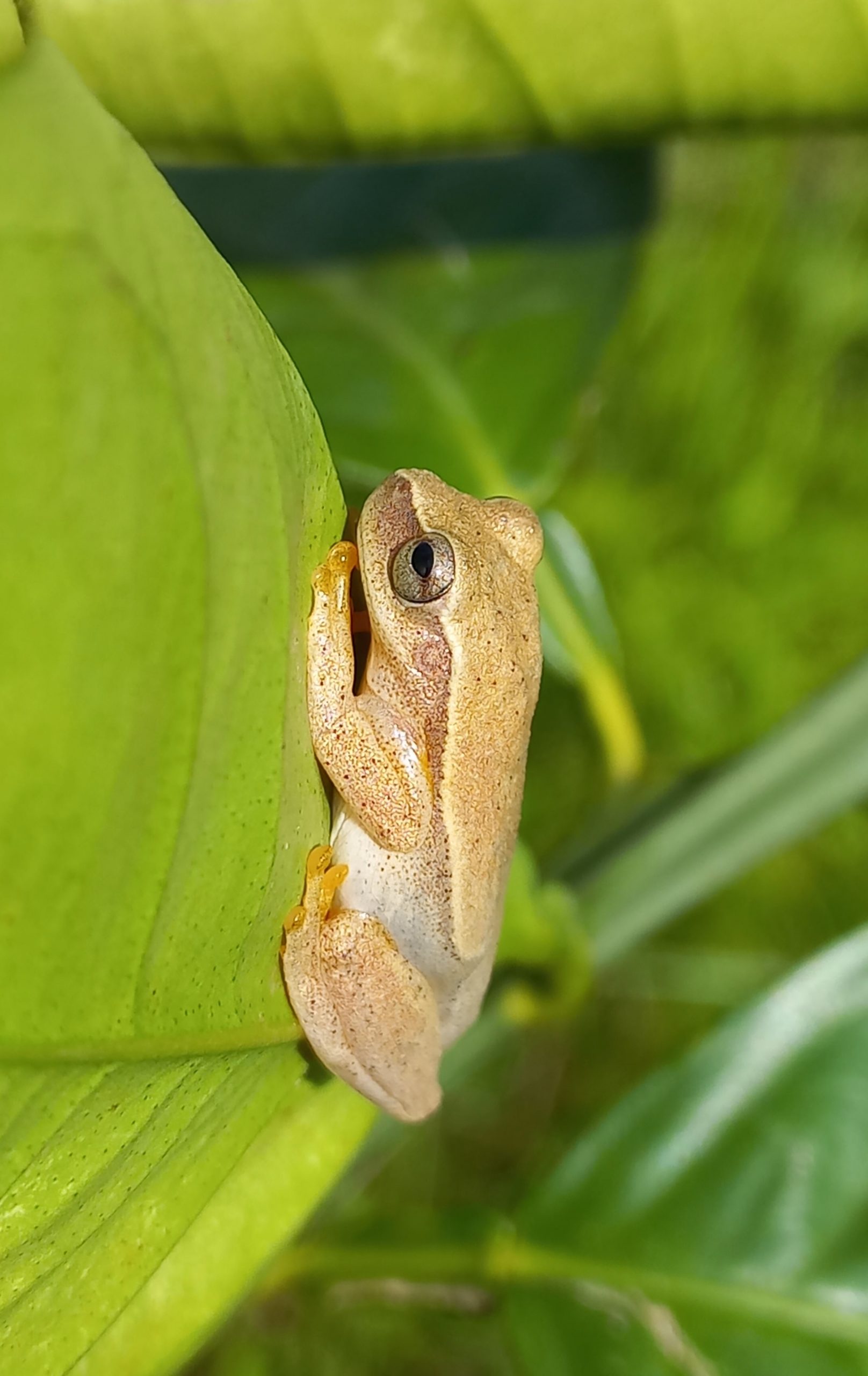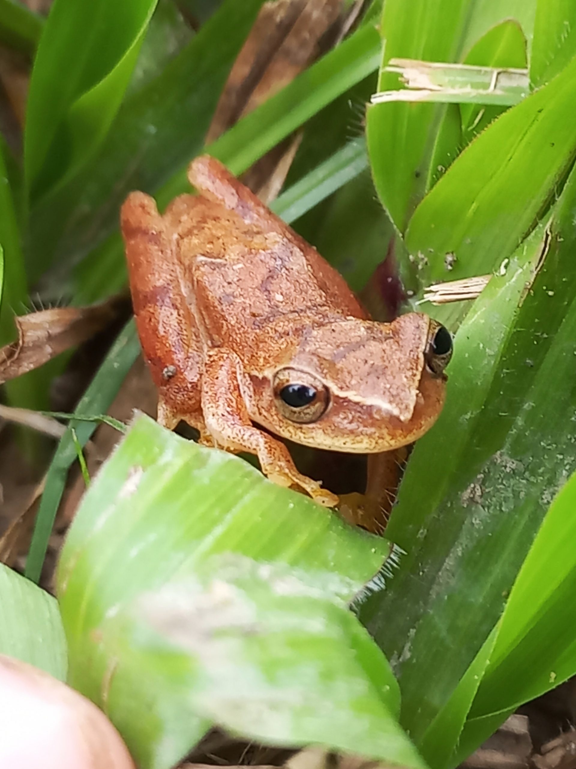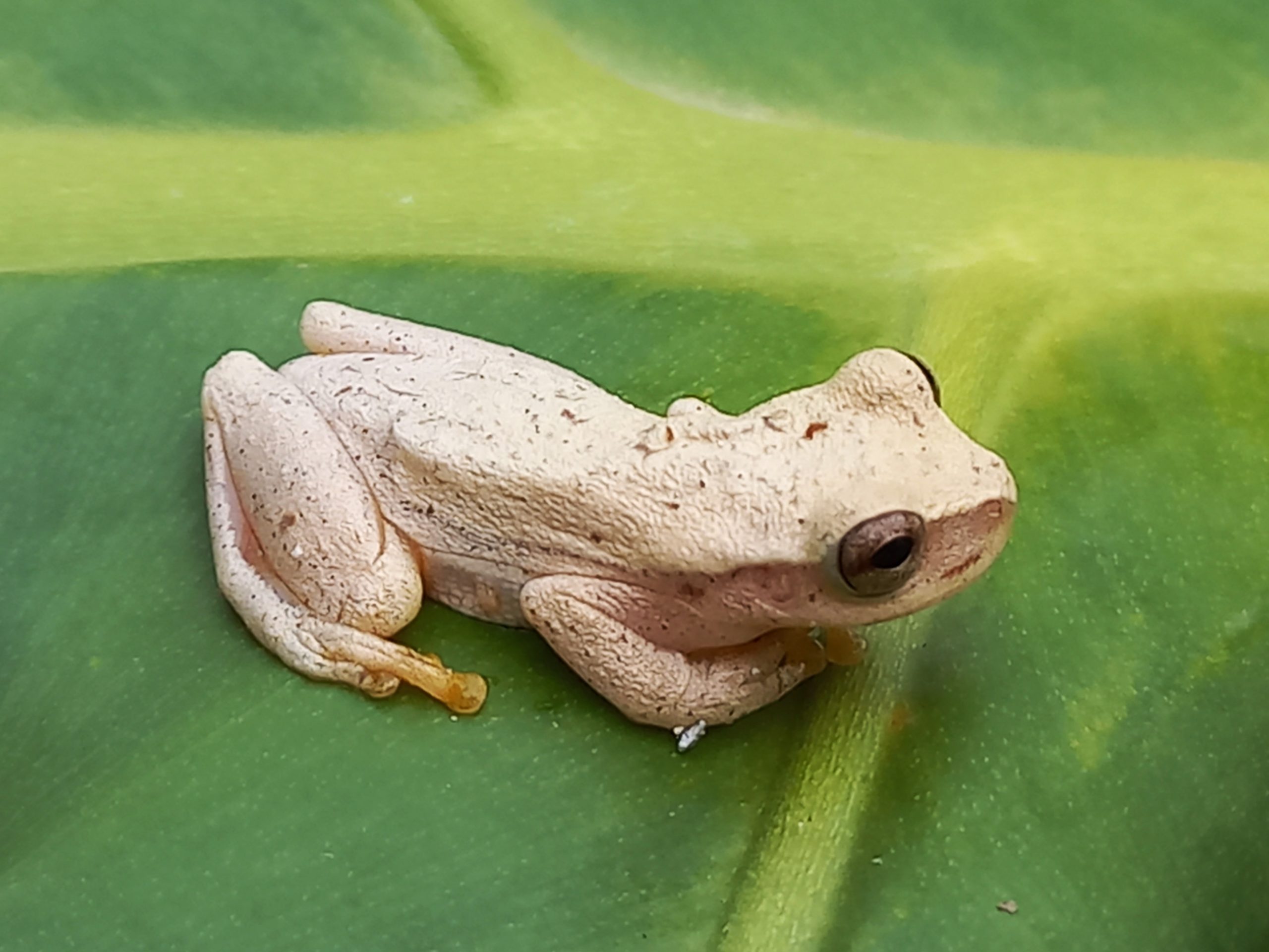 A common tree frog found around the house and sometimes inside the house.